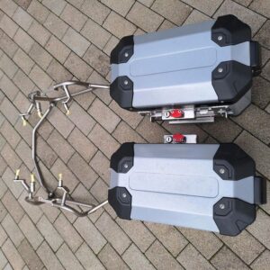 APRILIA SIDE CASES are built for riders who expect precision engineering, durability, and seamless integration from their motorcycle luggage. The side cases shown in the image feature robust aluminum construction, reinforced corners, secure locking systems, and dedicated mounting frames , making them perfectly suited for long-distance touring and adventure riding.