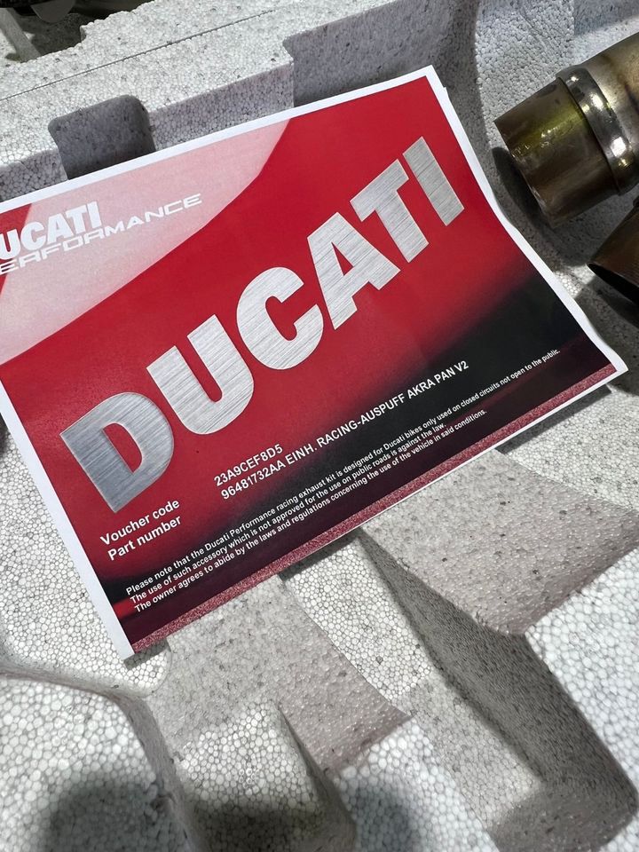 Akrapovic exhaust systems are used by factory race teams worldwide, proving their reliability under extreme conditions. Ducati Performance branding further guarantees authenticity, quality control, and compatibility.