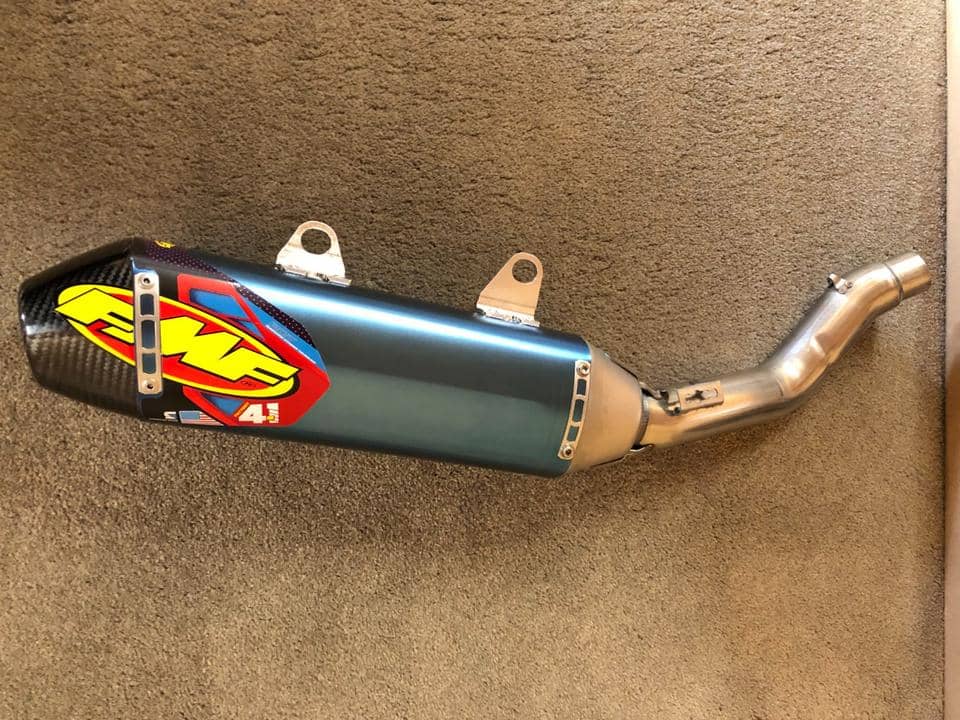 From the image provided, this exhaust clearly showcases FMF’s premium construction standards: a lightweight canister, precision-welded stainless steel mid-pipe, and reinforced mounting brackets designed for intense riding conditions. This is not a generic aftermarket exhaust—it is a performance upgrade developed through decades of racing experience.