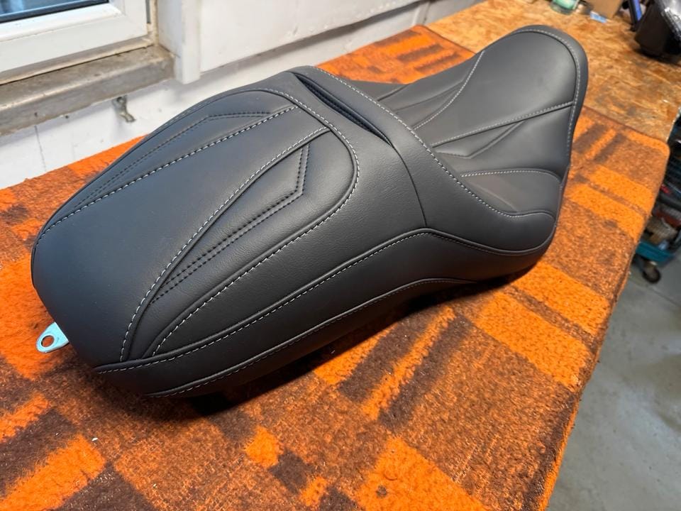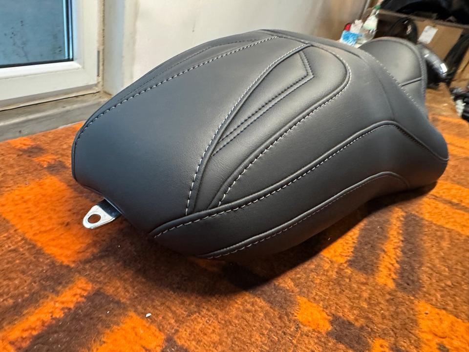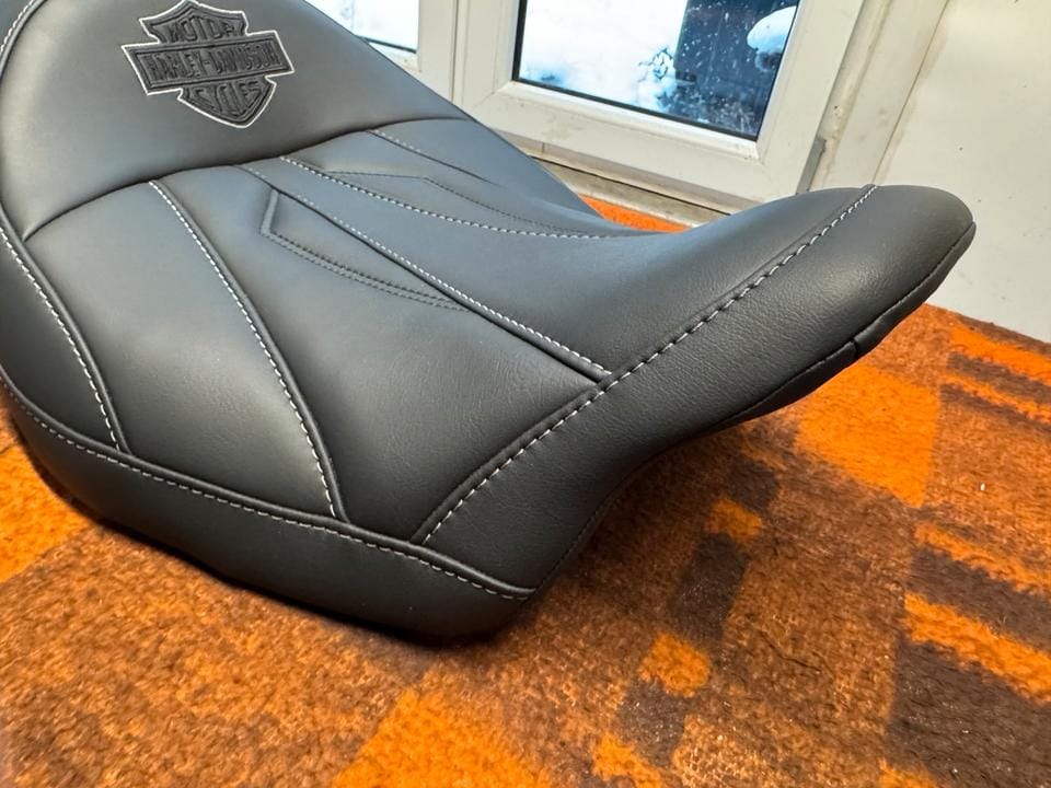 Unlike standard seats, this Harley Davidson comfort seat features an ergonomically contoured profile . The rider area is sculpted to naturally support the pelvis and lower spine, promoting better posture during long rides.
