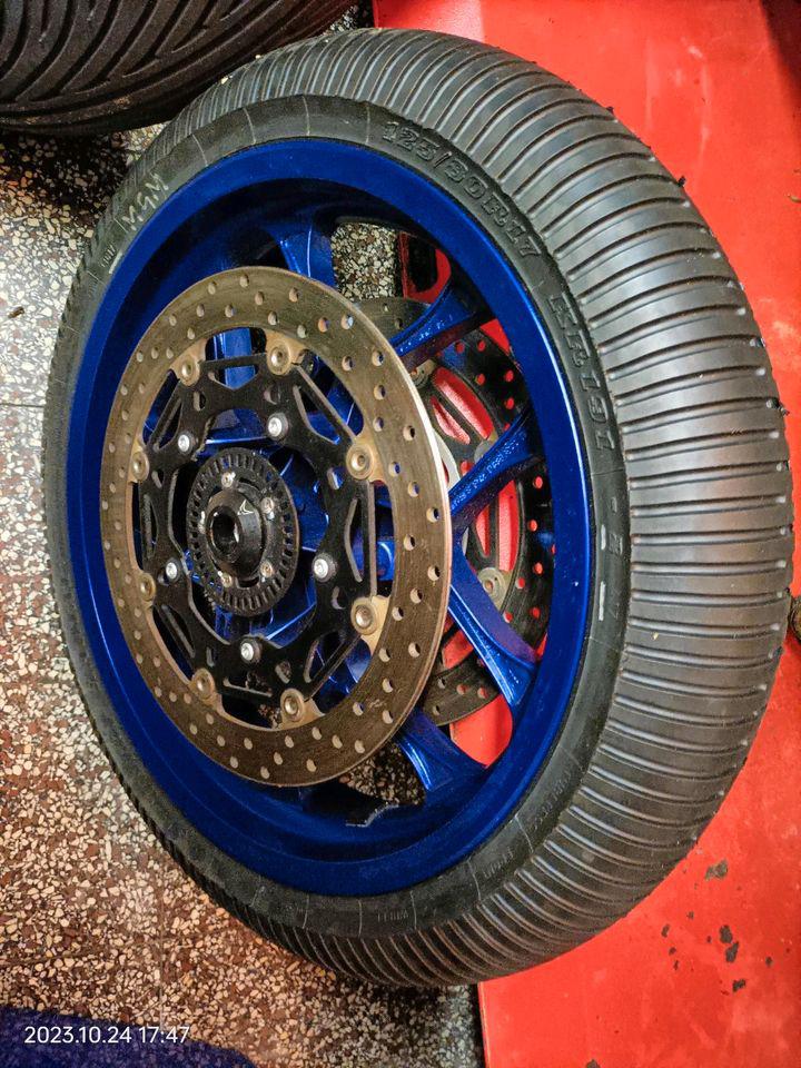 Beyond performance, a MOTORCYCLE WHEEL SET plays a significant role in the visual identity of the motorcycle. The blue finish seen in the image adds a strong sport aesthetic and highlights the mechanical components of the bike.