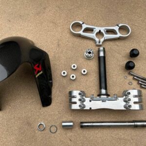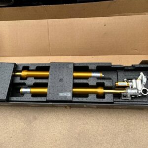 Öhlins front forks are manufactured using aerospace-grade aluminum and coated with advanced surface treatments that reduce friction and wear. Internal components are CNC-machined for microscopic precision, ensuring smooth oil flow and perfect damping characteristics.