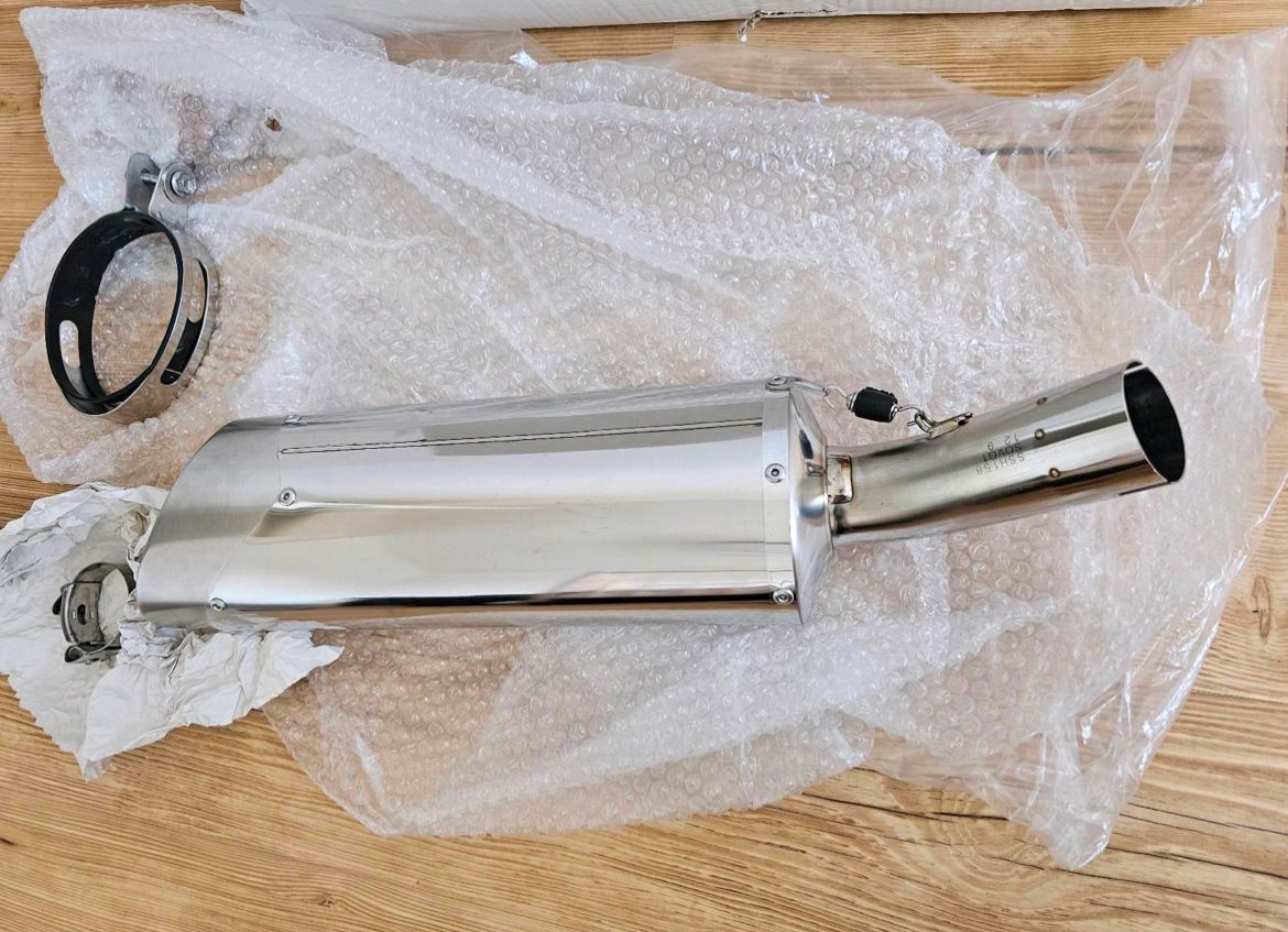 This exhaust system shown in the image is a high-quality slip-on performance exhaust, manufactured with premium stainless steel and precision welding. It delivers improved exhaust flow, reduced weight, and a refined racing sound that enhances the riding experience without sacrificing durability.