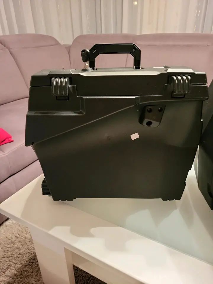 TRIUMPH MOTORCYCLE SIDE CASES are designed for riders who expect refined engineering, durability, and seamless integration from their touring luggage. The side cases shown in the image feature hard-shell construction, integrated carrying handles, secure locking mechanisms, and a clean, modern design , all reflecting Triumph’s premium approach to motorcycle accessories.